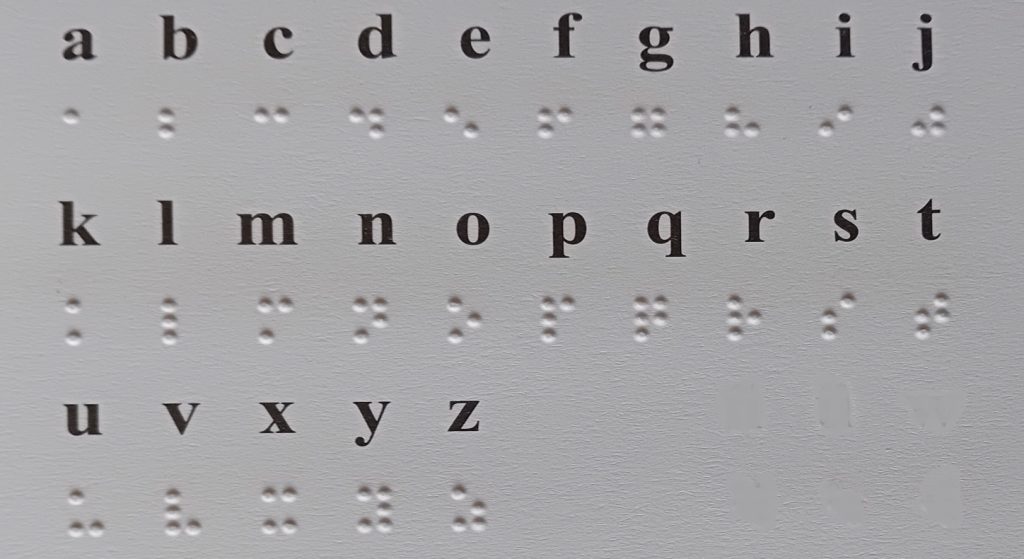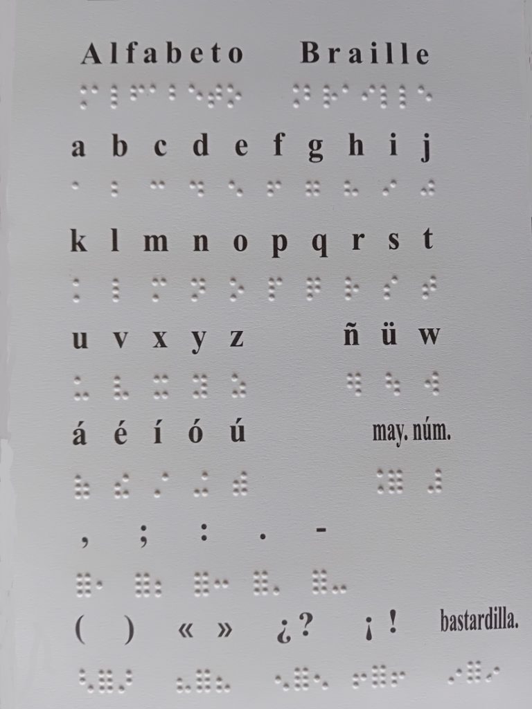 Las personas ciegas poseen un sistema de lecto-escritura propio, con el cual pueden representar todos los signos existentes en tinta. Se basa en en la combinación de seis puntos en relieve llamado “signo generador”.