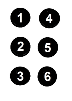 Primera serie: Tomando los cuatro puntos superiores (punto 1, 2, 4, 5) y realizando con ellos todas las combinaciones posibles, se obtienen diez signos que forman la primera serie.