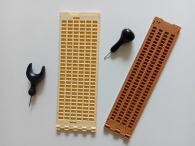 PAUTA Y PUNZÓN PARA ESCRIBIR BRAILLE DE MANERA MANUAL